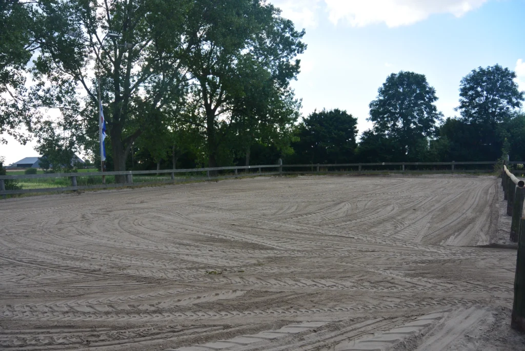 Onze overdekte rijbak is 16 bij 24 meter en voorzien van een verende bodem. Bovendien is de overdekte rijbak goed verlicht.